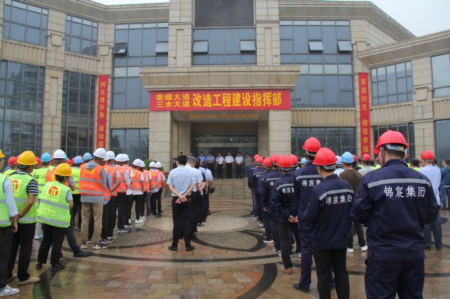 錦宸集團董事長李煥軍在誓師大會上發(fā)言,李煥軍說,三水大道改造工程是區(qū)委、區(qū)政府確定的2021年民生實事項目,也是省運會“五點一線”環(huán)境整治的重點工程,事關百姓福祉、城市發(fā)展。錦宸集團將秉持工匠精神,下足繡花功夫,以昂揚的斗志、必勝的信心,全力以赴高效推進項目建設,確保2021年12月底主路面通車。施工全程時刻緊繃安全生產弦,嚴格執(zhí)行安全管理相關規(guī)定,做到安全生產“零”事故,文明施工不擾民,嚴格按照揚塵管控“六個100%”要求,加強建筑工地環(huán)境整治、揚塵控制。踐行“品質工程”理念,嚴把工程質量關,真正把項目建設成質量一流的樣板工程、暢通工程、民心工程。